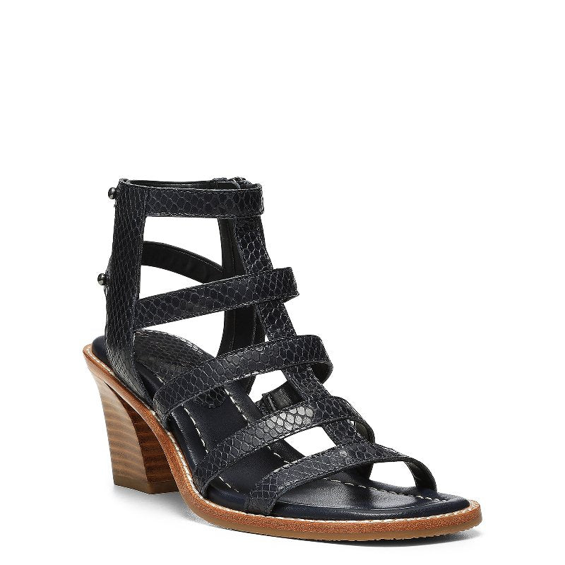 The JENESSA heeled sandal features a caged upper design in glossy pebbled leather. This chic square-toe style has a memory foam cushioned insole and a durable leather outsole with a rubber forepart for extra traction. It fastens with a side zip closure for easy on-off access.