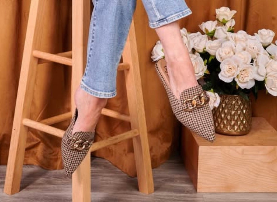 The Black and Tan Houndstooth Mule by Corkys is crafted with quality materials for long-lasting wear. It's a chic addition to any wardrobe, perfect for a variety of occasions.